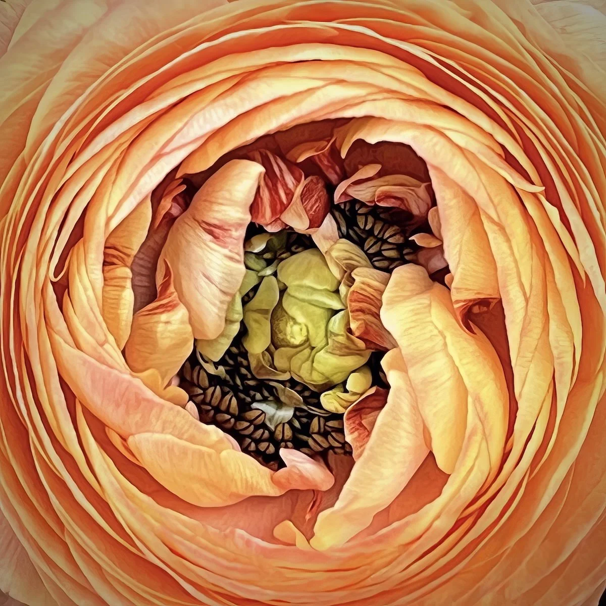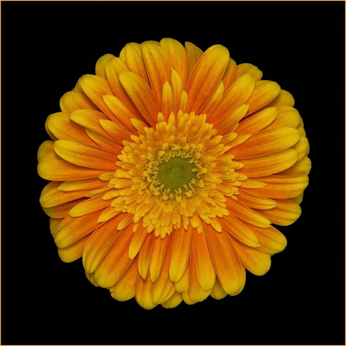 Orange is the color of heat held in light, suspended between fire and fruit, dusk and dawn. It occupies a liminal space between red’s urgency and yellow’s brightness, carrying associations of vitality, caution, pleasure, and decay. Both inviting and disruptive, it resists neutrality, suggesting transformation—the charged moment when something familiar begins to shift.
